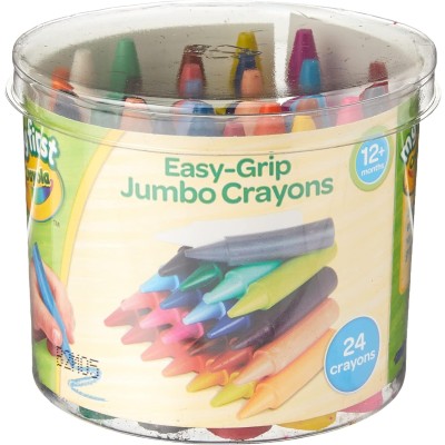 24 easy grip jumbo crayons sized to fit toddlers' palms so they can easily make their first...