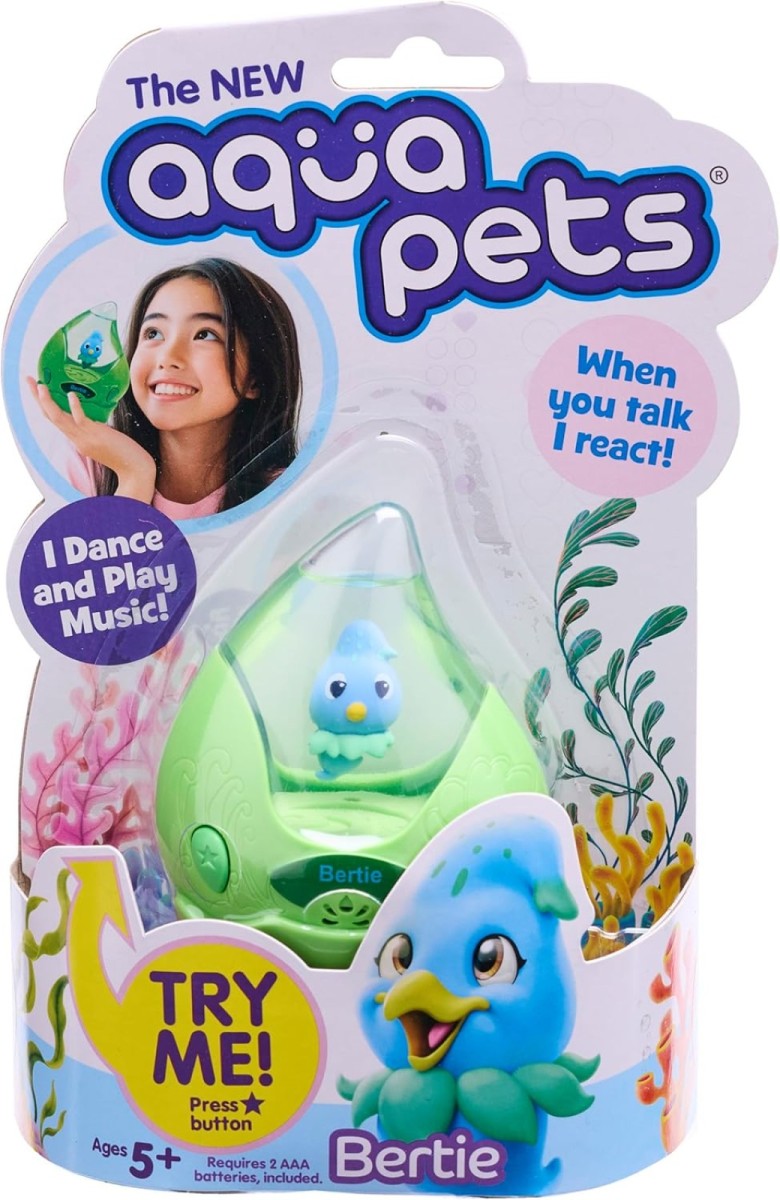 - Bertie is always teaching her Aquapet friends new dance moves, her favourite is the Hula. Bertie was born on a tropical island, and when it gets dark, her spots get brighter.