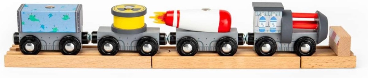 - Fuel your little astronaut's dreams with this futuristic wooden train engine; featuring three carriages with removable loads & hidden aliens for a stellar adventure; for children age 3+
