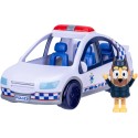 - The Bluey Police Car includes a police car with lights & sounds, Policeman figure, and a themed sticker set.