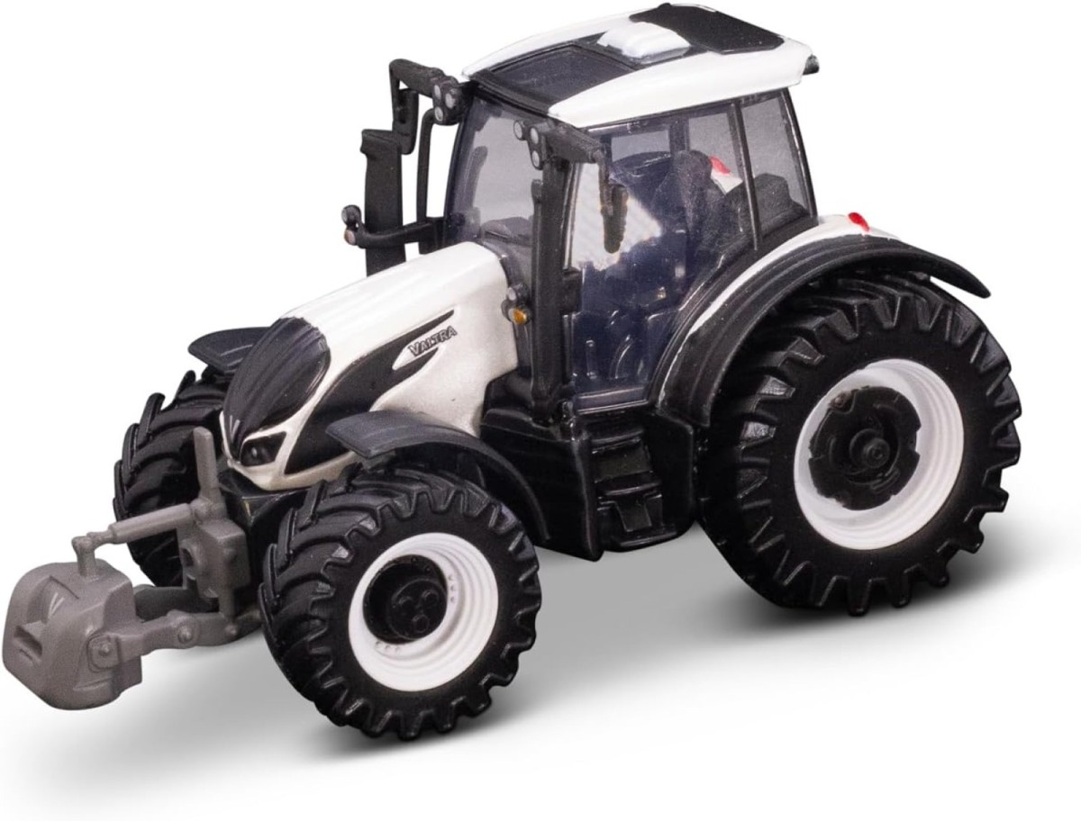 Detailed 10cm model of a Valtra M2/Q farm tractor. The chassis and mud guard sit above four chunky wheels with authentic looking deep tread tyres. At the top of the steps is the open view cabin that features full interior details just like any other Bburago model vehicle.