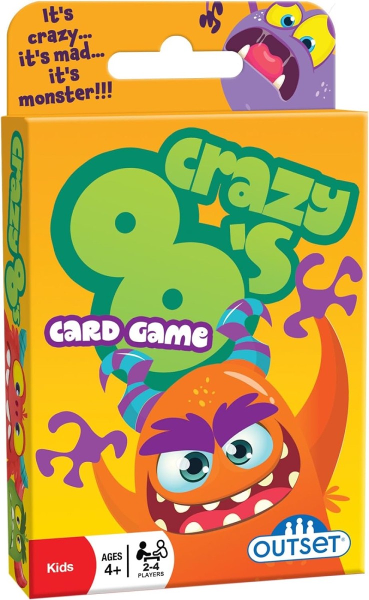 Go crazy with Crazy 8's! It's the monster-filled game of wild possibilities. Match the numbers or the colours to get rid of your monsters - but beware of that wild Eight, with its multicoloured chaos. Have a monstrously good time and laugh maniacally as you race to play all your cards! It'll be a monstrously good time!
