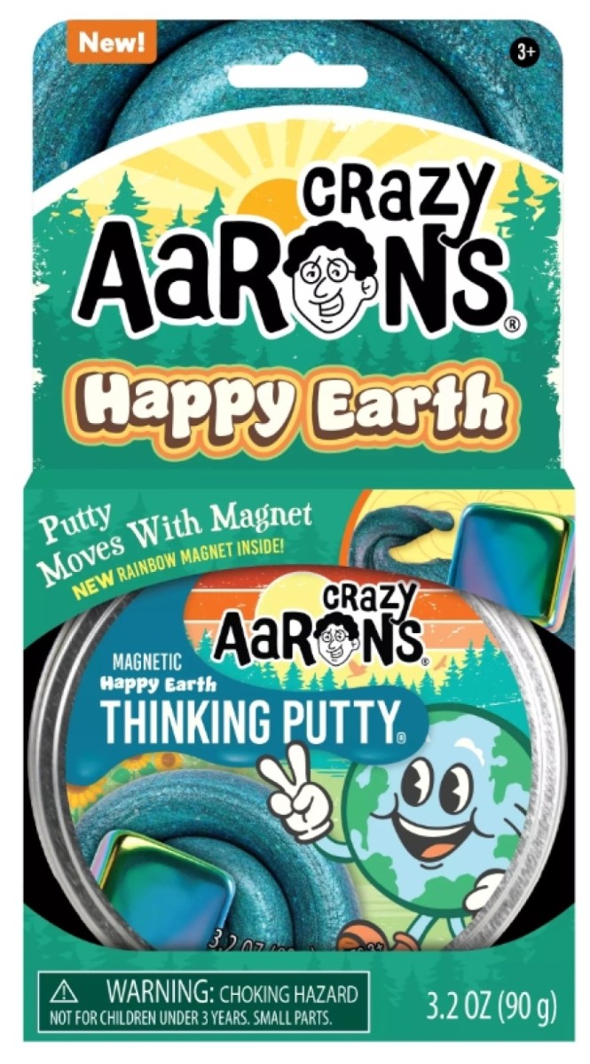 When charged with the rainbow magnet, Happy Earth Thinking Putty will gleefully dance around showing off its sparkling, mineral earth blue color.