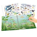 This sticker book is all about the exciting underwater world. 16 pages, 3 pages of glitter stickers and 1 page of paper stickers provide animal-themed sticker fun. Cool design: the diving goggles-shaped cut-out in the cover allows you to take a peek at the stickers.