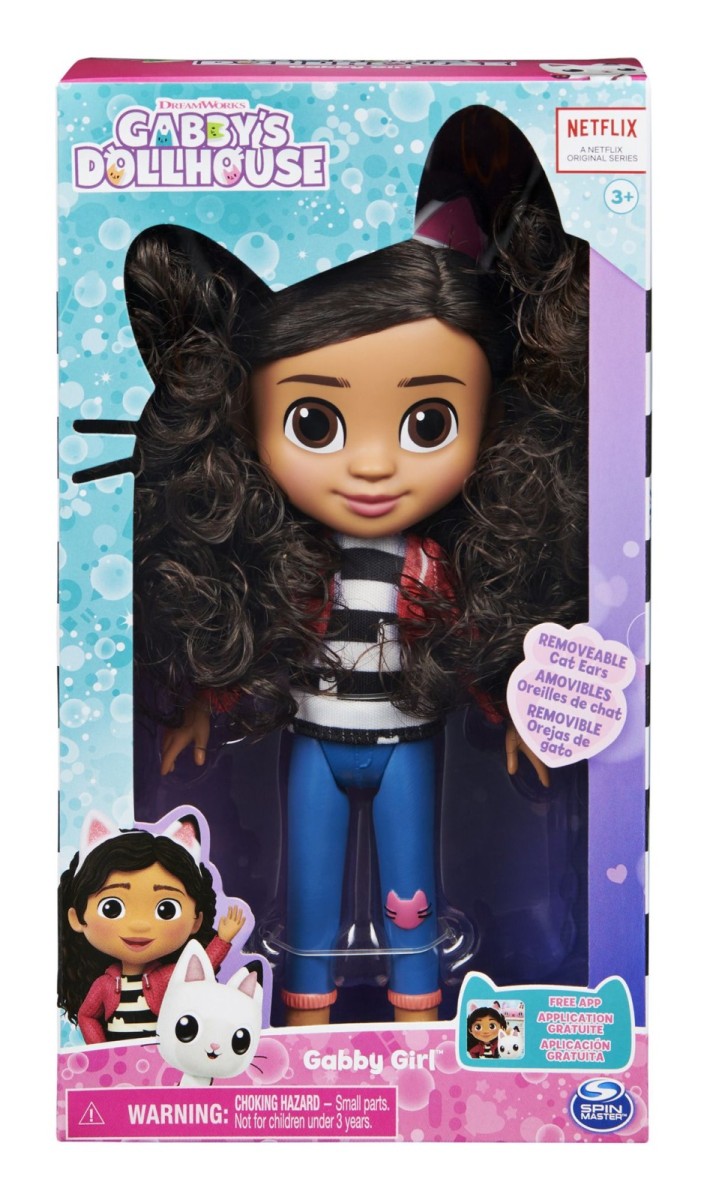 • Dressed in her classic outfit from the show, Gabby is ready for endless adventures. Realistic details like her fabric top, cat ears and kitty jeans bring Gabby to life.
