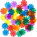 - Simple octagonal pieces in translucent colours which interlock easily to make a wide variety of models