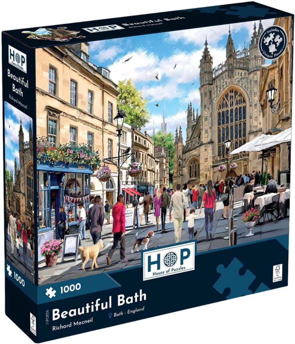 - Wander down the streets of Bath with our 1000 piece jigsaw ; includes 1000 puzzle pieces with city folk & shop details for a more difficult level; jigsaw art by Richard MacNeil