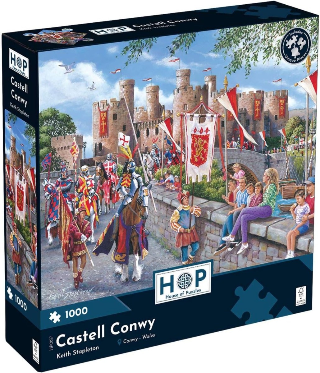- Admire a medieval fortress with our 1000 piece jigsaw based on the iconic Conwy Castle in Wales; includes 1000 puzzle pieces for an extra challenge; puzzle art by Keith Stapleton