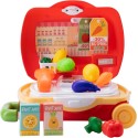- Includes pretend fruit and vegetables, fruit juice cartons, weighing scales, checkout scanner, plus much more!