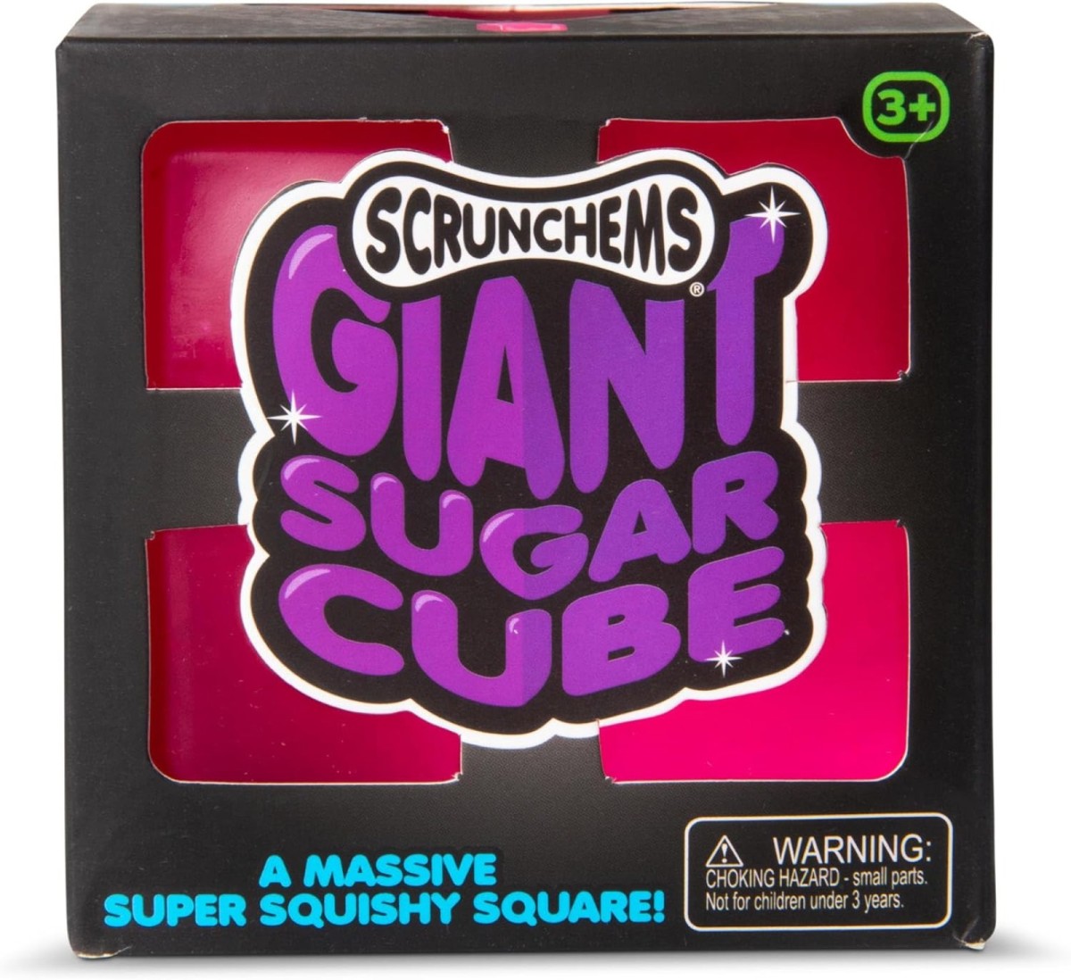 - Massive squishy cube filled with slow-moving, sugar-like gel provides a uniquely satisfying tactile experience