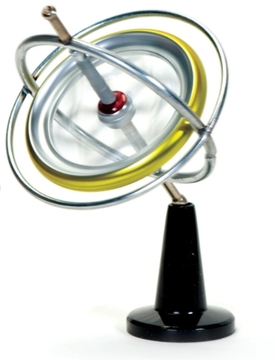- Working gyroscope that stays perfectly balanced on its end when the central wheel is spinning in motion