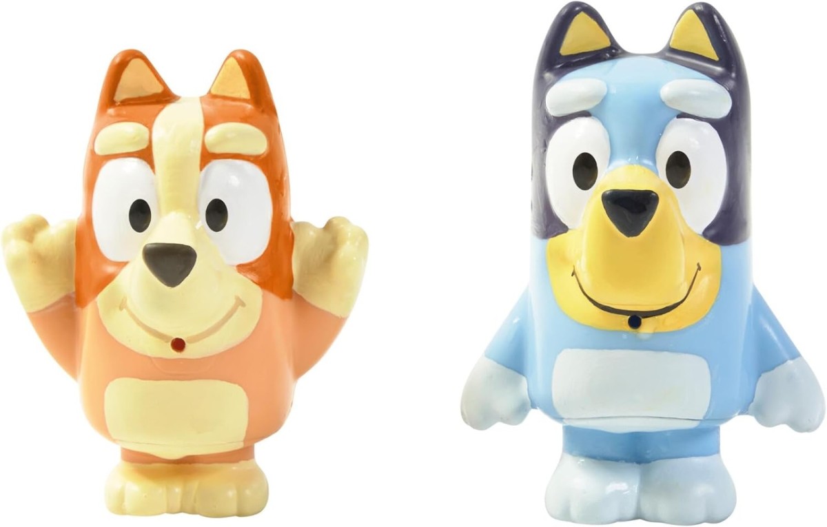 - Bring more fun to bath time with the Bluey Bath Squirters featuring Bluey and Bingo