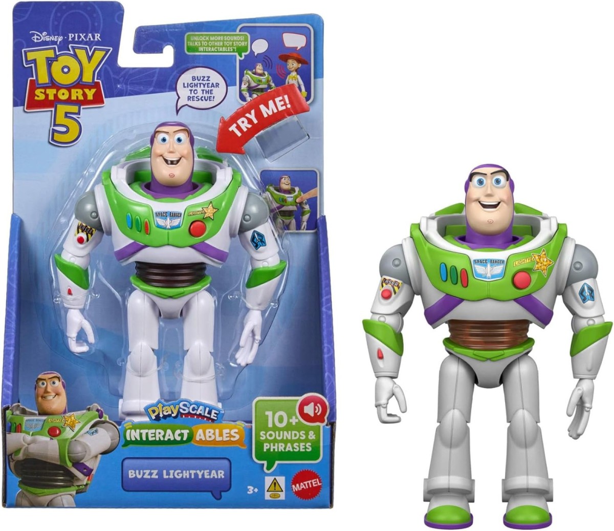 - Reporting to Star Command! This Buzz LIghtyear Interactables talking figure from Disney and Pixar’s Toy Story 5 has a lot to say. Push the big red button on his Space Ranger uniform his to hear movie phrases!